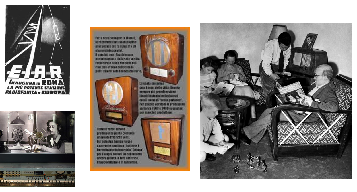 L’EIAR era una società privata, ma il governo, nel decreto di concessione di trasmissione per 25 anni, si assegnava quattro membri del consiglio di amministrazione; inoltre assegnava al Ministero delle Poste e Telecomunicazioni prerogative in merito allo statuto e alle sue modifiche. Un controllo governativo fondamentale perché, in pieno periodo fascista, la radio fu così in grado di diventare ben presto organo prezioso del regime, soprattutto come importante strumento di propaganda politica. I ricevitori venivano creati (come la radio Balilla della Radiomarelli o la radio Rurale) per essere installati in zone di riunione collettiva, come appunto gli ambienti rurali dei coltivatori che si radunavano per l’ascolto, oppure in luoghi come le piazze e le scuole.