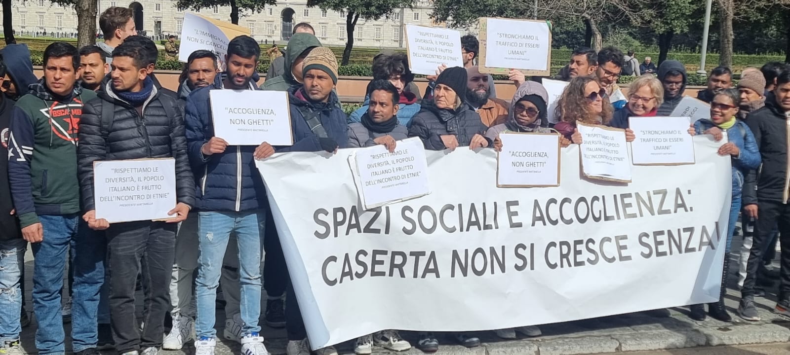 Stamattina abbiamo portato i saluti del Movimento Migranti e Rifugiati di Caserta al Presidente Sergio Mattarella, in visita per la prima volta a Caserta! Lo abbiamo accolto con striscioni e cartelli con le sue dichiarazioni emblematiche e il suo impegno sulla tutela dei diritti umani.