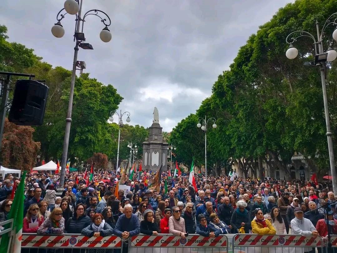 Una folta pattuglia di bambini delle elementari, scortati dalle loro mamme preoccupate perché non prendessero troppo freddo, e accompagnati da un chitarrista e da una flautista hanno concluso l’esaltante festa della liberazione svoltasi a Cagliari intonando a piena voce ‘Bella Ciao’. E con loro ha cantato tutta la piazza del Carmine dove si è concluso l’imponente corteo, come non si vedeva da anni, formato da oltre diecimila persone (per alcuni il doppio). Esaltante, la festa, perché compatta nel riaffermare con orgoglio e determinazione l’adesione, oggi come sempre, all’antifascismo; esaltante perché i principali protagonisti sono stati i giovani: universitari, delle superiori, delle associazioni di base e culturali che dal palco allestito dal Comitato 25 Aprile, dall’Anpi e dalla SPI-Cgil hanno esposto con lucidità, sintesi, efficacia, le loro posizioni. No alle guerre, sì alla pace, sostegno alla lotta palestinese, condanna delle misure governative in materia di sanità, scuola, diritti, immigrazione, di libertà d’informazione. Tema, quest’ultimo, ritornato in tanti interventi, ultimo dei quali è consistito nella lettura integrale del monologo di Antonio Scurati censurato dalla Rai.