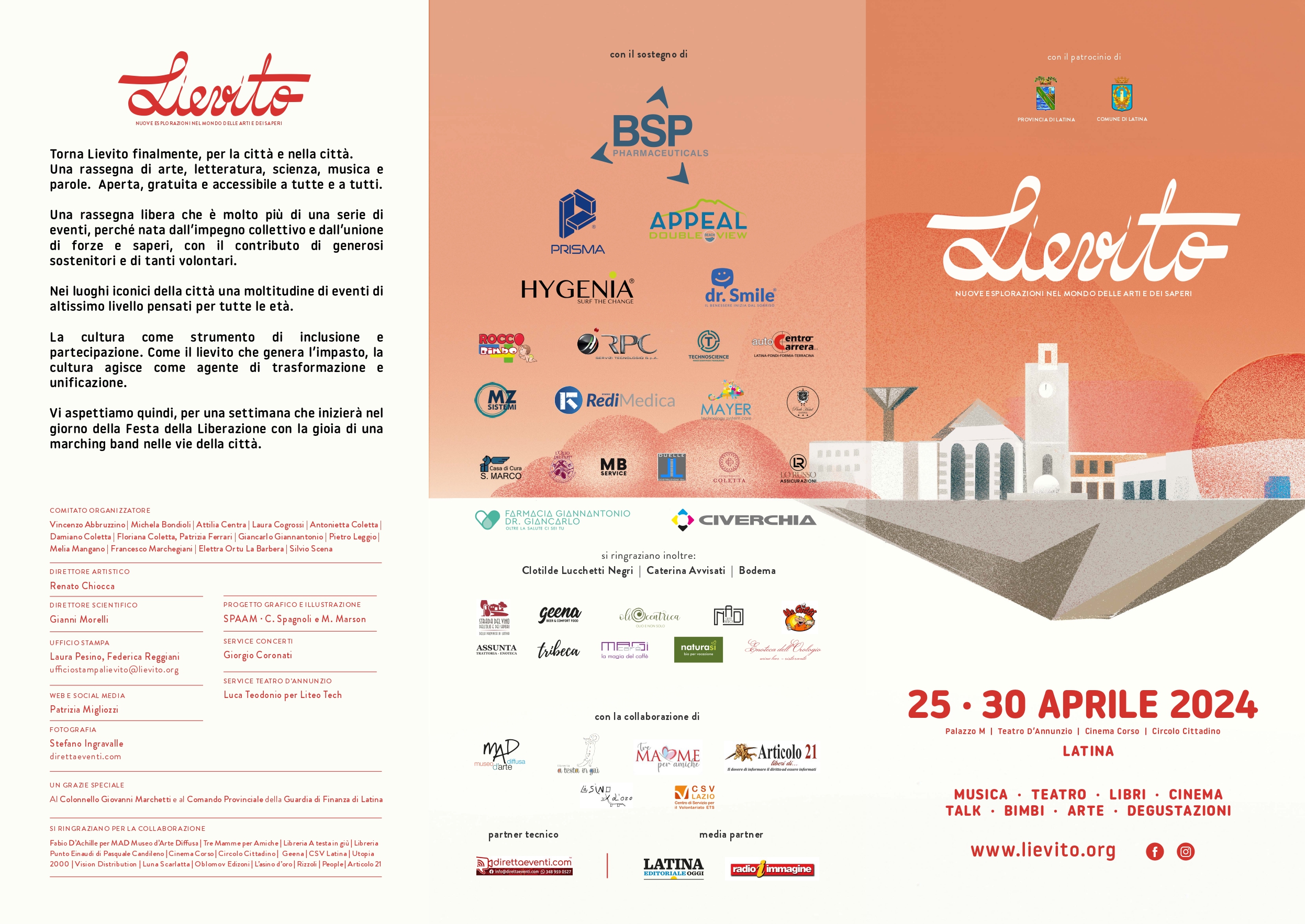C’è ancora Lievito e stavolta c’è anche Articolo 21. “Ripartiamo da dove ci eravamo lasciati, ancora una volta Lievito ci dà l’occasione di poter vivere nella nostra città le esperienze di chi da Latina è partito e di chi a Latina viene per la prima volta, con la stessa voglia di condividere” così il direttore artistico Renato Chiocca ha annunciato il ritorno di Lievito. Dal 25 al 30 aprile a Latina si svolgerà l’importante rassegna culturale che in una settimana offrirà oltre 30 eventi di arte, musica, libri, cinema, teatro, scienza e spazio bimbi.