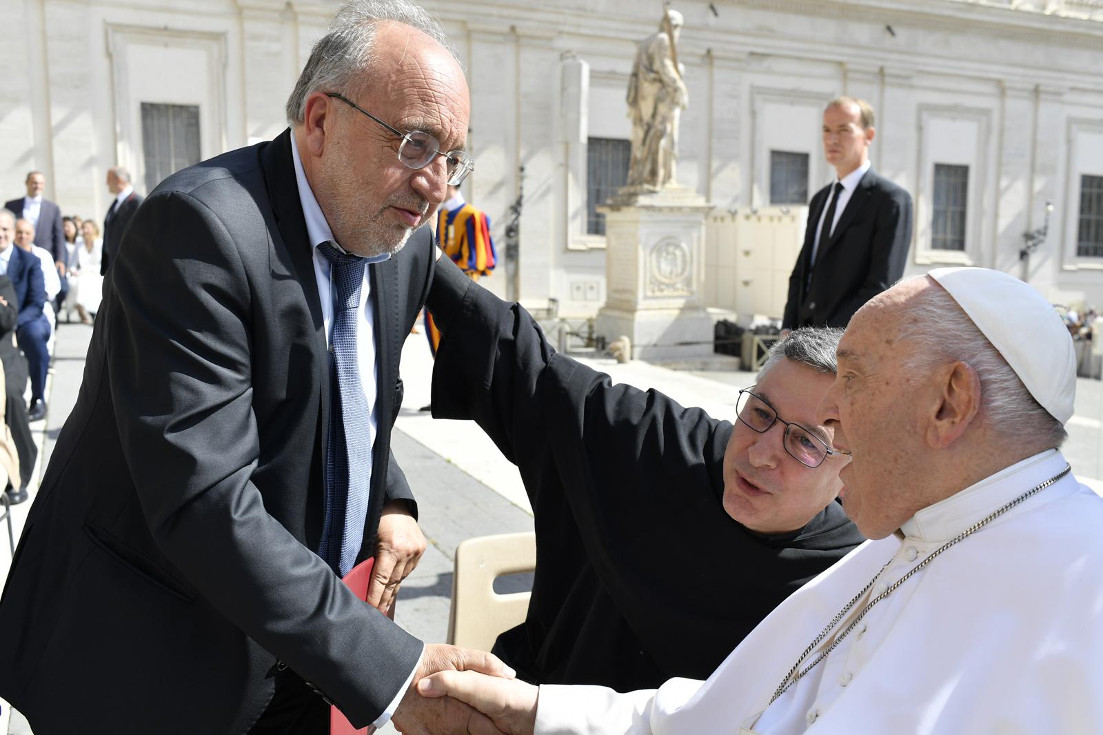 Tutti visibilmente emozionati ma qualcuno lo è di più. Inevitabilmente. Dopo aver trascorso mesi a scrivere questa carta con l’obiettivo e la speranza di cercare e trovare un linguaggio nuovo per i bambini e avviare insieme a loro un altro capitolo dell’informazione, ieri finalmente quell’obiettivo è diventato realtà. Padre Enzo Fortunato, un appassionato promotore dell’informazione che non ferisce, è stato l’anima della Carta di Assisi declinata per i bambini. Ci ha lavorato insieme a Iside Castagnola e a Roberto Natale che ieri erano tra i presenti alla consegna e alla firma del Papa.