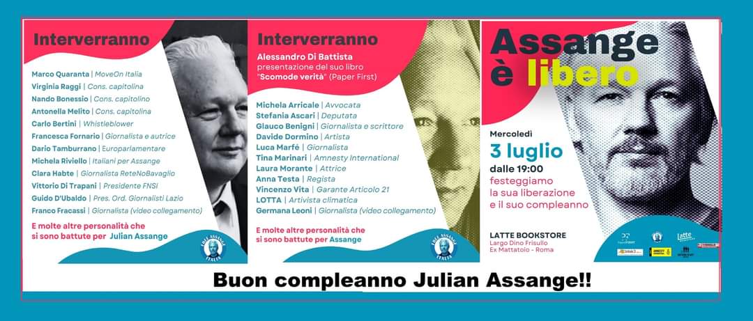 Il caso Assange, passato per anni tra silenzi e omissioni di soccorso, tutti colpevolmente voluti, si apre ora ad una nuova fase: abbiamo liberato un prigioniero innocente, ora resta da liberare la parte innocente di mondo, quella che crede nella Democrazia e nella libera informazione come suo pilastro determinante. A Torino, Genova, Milano, Roma, Napoli, Bari e Catania, cioè in tutta Italia, si festeggia oggi il compleanno di Julian Assange.