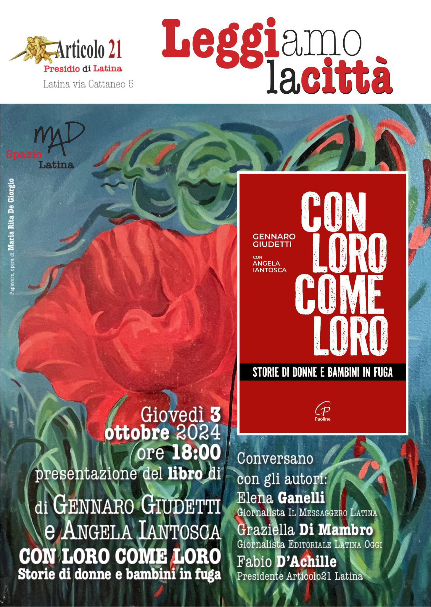 Giovedì 3 ottobre alle ore 18 presso lo SPAZIO MAD di Via Cattaneo 5 a Latina, il Presidio di Articolo 21 ospiterà Gennaro Giudetti e Angela Iantosca per la presentazione del libro: CON LORO COME LORO Storie di donne e bambini in fuga.