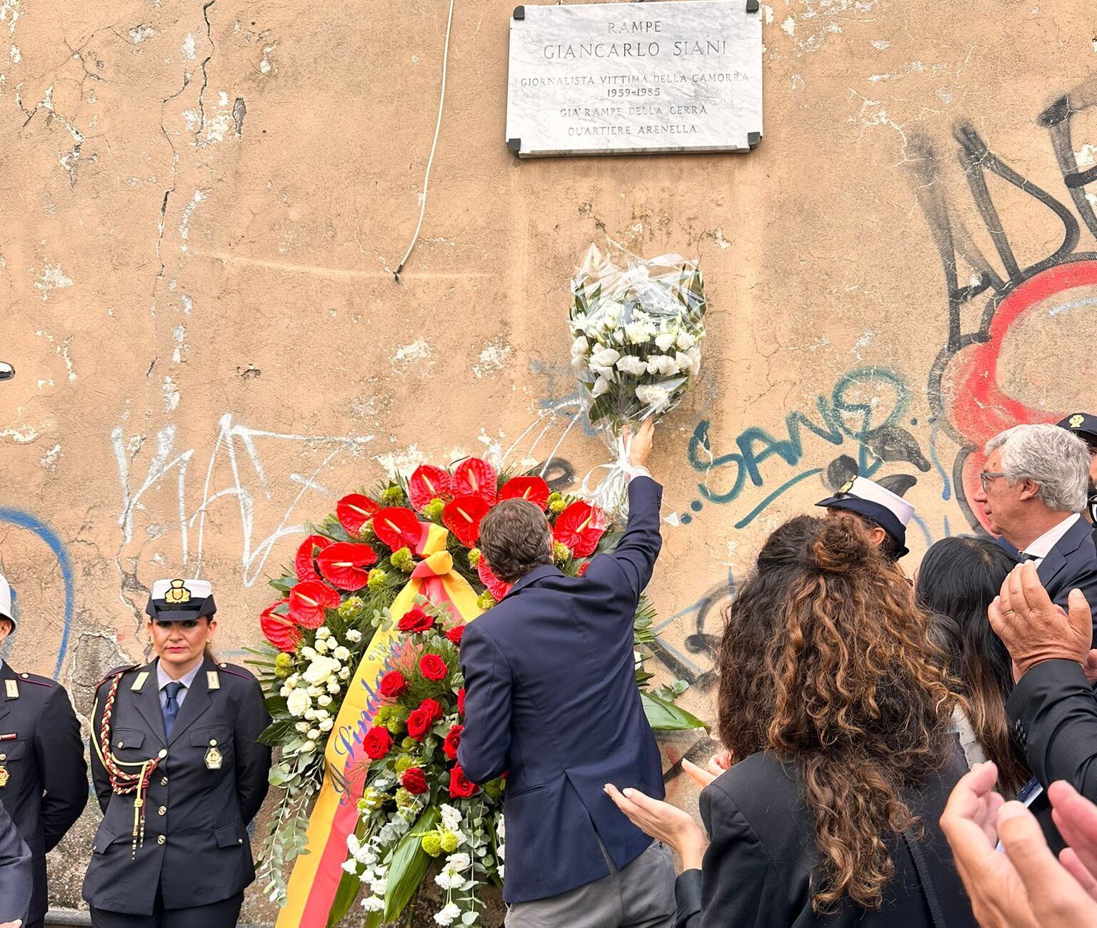 (Nella foto l’omaggio a Giancalo Siani di questa mattina nella sua città, Napoli)