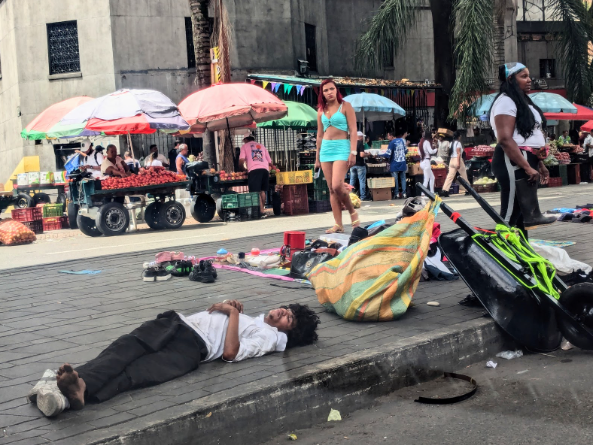 Il fenomeno più evidente, non occultato nelle periferie bensì in pieno centro, è quello dei tossicodipendenti: giovani relitti umani che vivono sdraiati nelle strade attorno a Plaza Botero, alzandosi solo per comprare Basuco, il crack colombiano. Il termine deriva da “basura” cioè monnezza, poiché questa sostanza si ottiene dagli scarti della lavorazione per la pasta di coca, mischiata a etere o benzina.