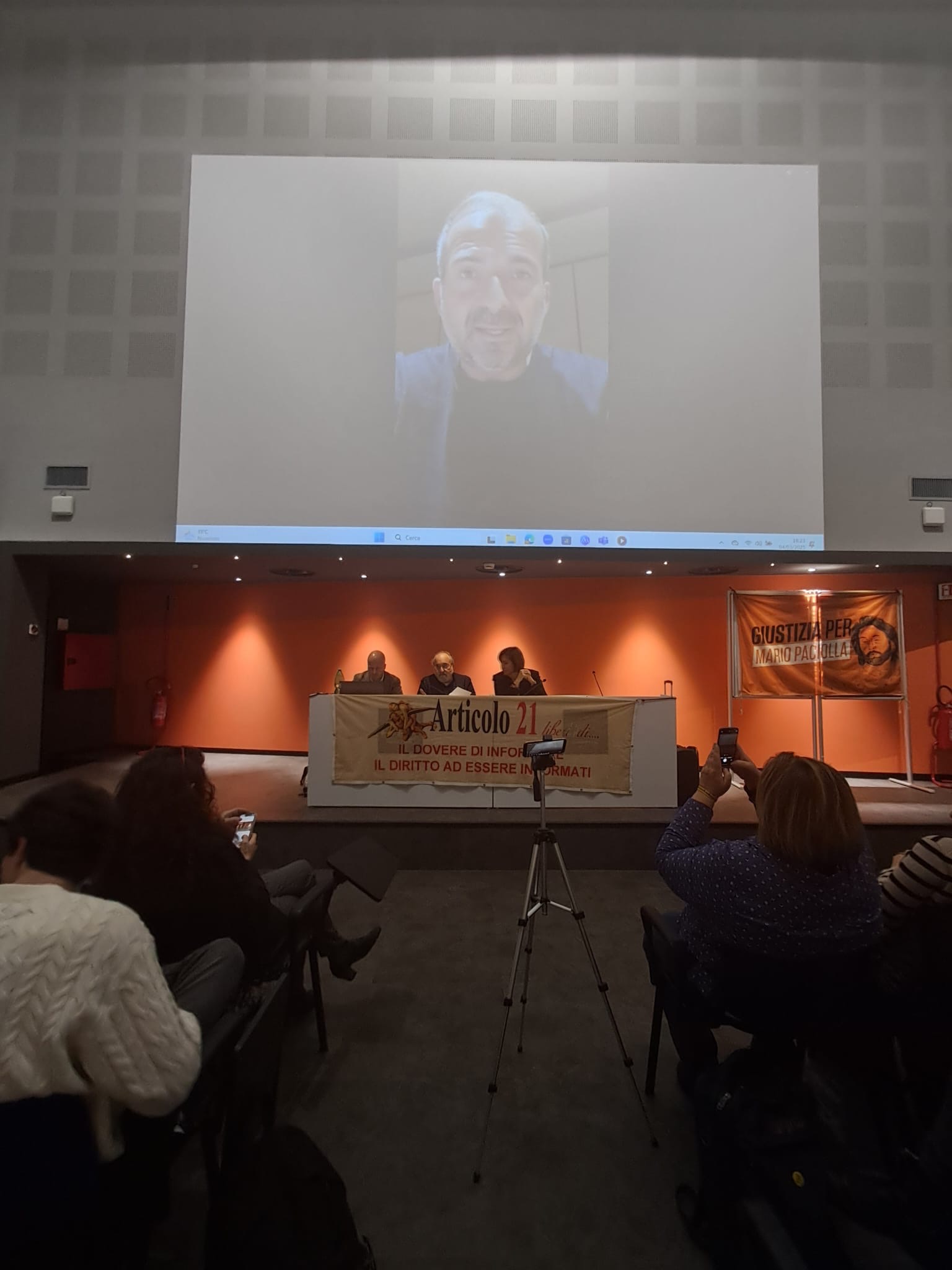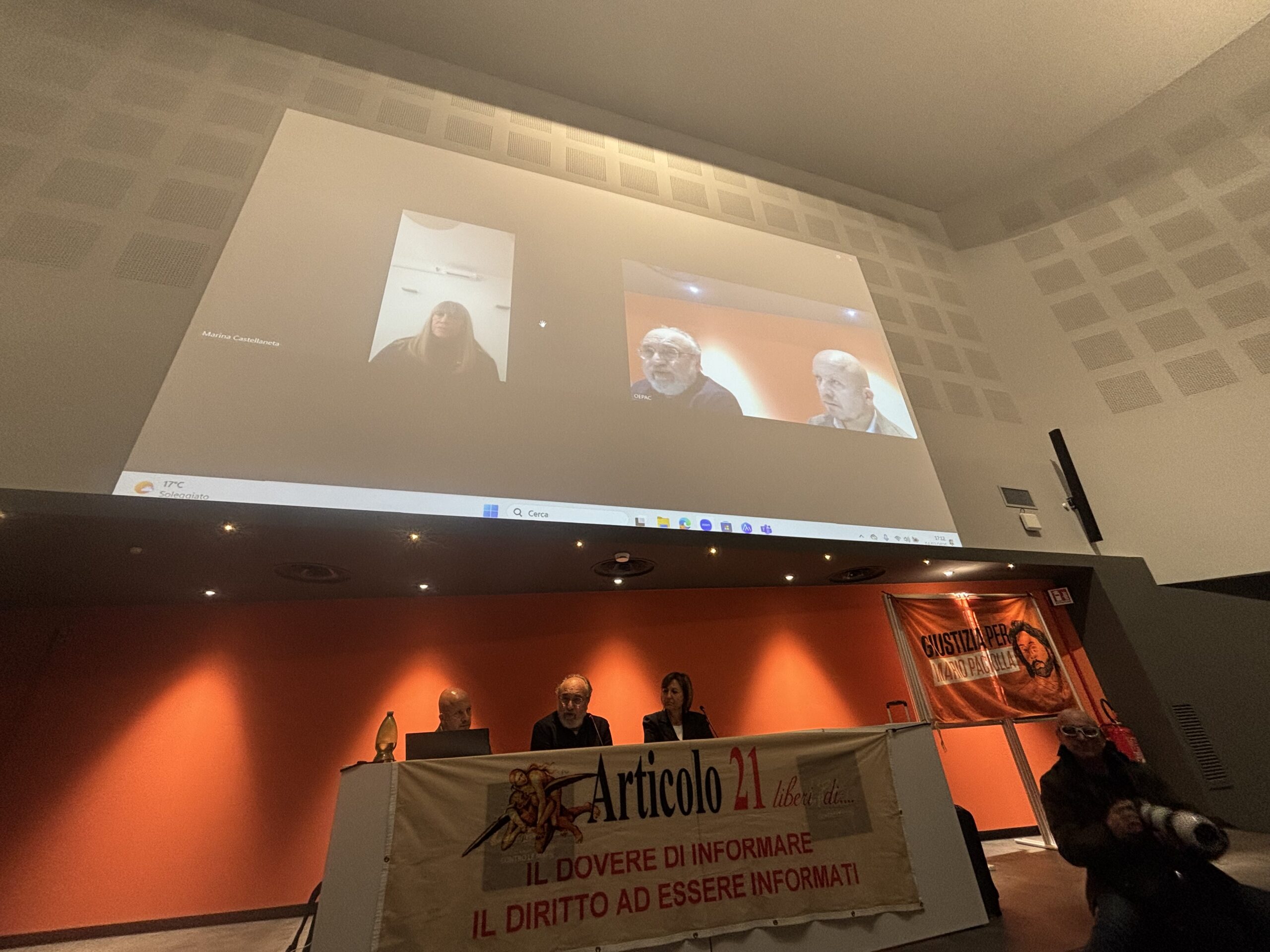 Tanti anche gli interventi da remoto attraverso video messaggi. Da Paolo Berizzi, giornalista di Repubblica, unico giornalista sotto scorta in Europa per le minacce dei neofascisti, al direttore di Fanpage Francesco Cancellato; dal giornalista di Report e de L’Espresso Paolo Mondani, dal presidente della Fnsi Vittorio di Trapani, alla responsabile per la Legalità di Articolo 21, Graziella Di Mambro.