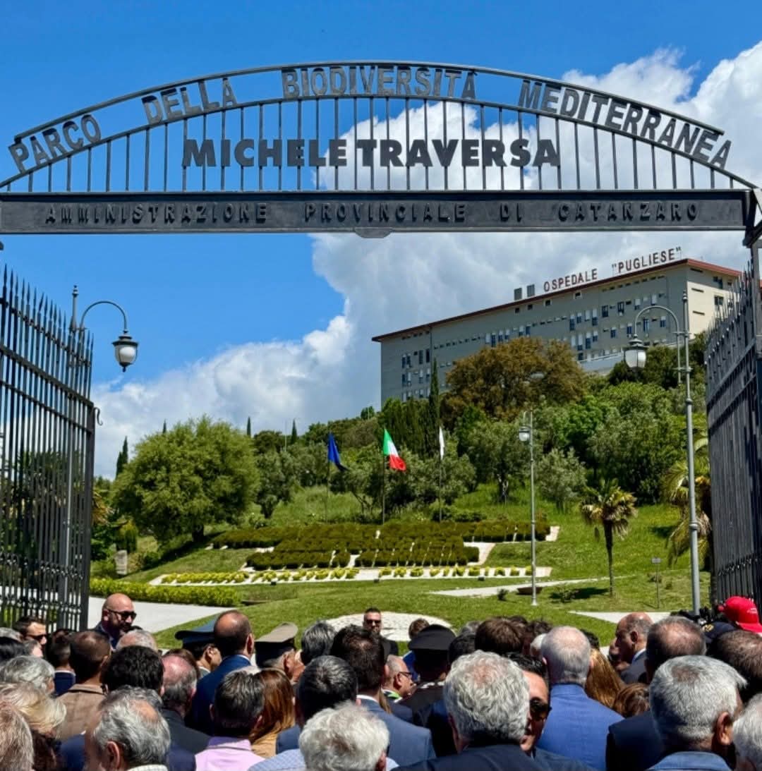Il 10 maggio 2025 il Parco della Biodiversità Mediterranea di Catanzaro è stato ufficialmente intitolato a Michele Traversa. La cerimonia, promossa e sostenuta da Fratelli d’Italia, ha visto in prima fila il sottosegretario Wanda Ferro, insieme a tutte le cariche istituzionali locali. Traversa, ex sindaco, ex deputato e figura storica della destra calabrese, viene oggi celebrato come padre fondatore del parco. Ma è davvero solo questo?