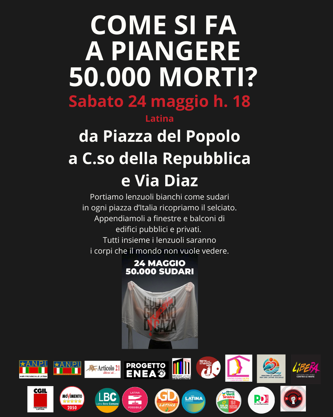 Vorremmo che tutti insieme, in tutta Italia, arrivassero al numero tragico dei 50.000 di Gaza. Tutti insieme saranno i corpi che il mondo non vuole vedere.