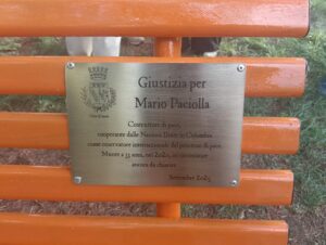 Infatti, l’iniziativa dà seguito all’Ordine del Giorno approvato dal Consiglio comunale di Imola il 29 maggio 2025, con cui si è deciso di installare una panchina di colore arancione, simbolo per non dimenticare quanto accaduto a Mario e per continuare a chiedere verità e giustizia sulla sua vicenda. Il Consiglio aveva inoltre ricordato che, il 30 aprile 2024, a Imola, si era svolta un’iniziativa pubblica dal titolo “I nostri figli dimenticati: la difficile verità sulla morte di Mario Paciolla”, durante la quale i genitori di Mario avevano raccontato la sua storia, sottolineando le incongruenze nella versione ufficiale del suicidio. In altre città italiane, analogamente, sono state promosse iniziative per mantenere viva l’attenzione sulla sua vicenda.