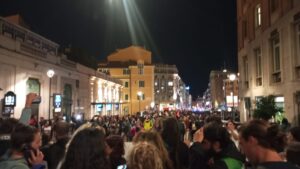 A Napoli i manifestanti hanno raggiunto la stazione Garibaldi. Con le bandiere della Palestina e i megafoni, si sono fatti largo per i corridoi della stazione fino ad arrivare sui binari dove si sono seduti e hanno continuato i cori. “Palestina libera”, “Intifada fino alla vittoria”, poi i cori con “Bella Ciao”.