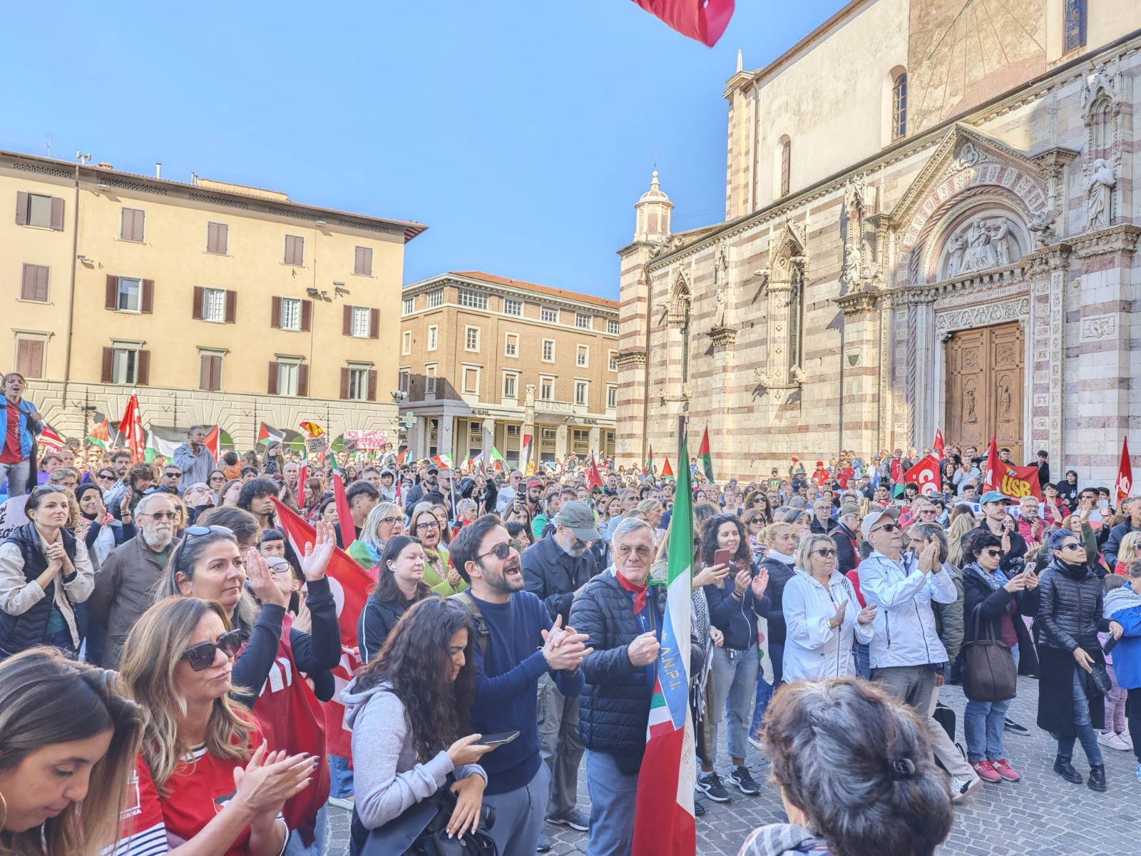 A chi ha gridato “è un’azione contro il Governo”, “dei morti di Gaza non gliene frega niente”, “è solo un modo per farsi un weekend lungo” i cittadini e le cittadine, i lavoratori e le lavoratrici, i pensionati e le pensionate, gli studenti e le studentesse hanno risposto con i loro corpi in movimento, sfilando in massa, una grande marea umana al canto di Palestina libera, invadendo le città ma anche i paesi e i piccoli borghi. La loro risposta è sotto gli occhi di tutti e sta nei numeri. Un fiume di gente che neppure noi ci saremmo aspettati di vedere, le scuole e le università occupate, a Pisa hanno occupato perfino la Normale, l’eccellenza in fatto di Università. I porti, le stazioni, le strade, le autostrade e perfino gli aeroporti. Alle 15 di venerdì i manifestanti hanno occupato la pista dell’aeroporto Galilei e adesso mentre scriviamo (sono le 16, 30 di Venerdì 3 ottobre) sono ancora lì, hanno lasciato la pista ma sono fuori dell’aeroporto. Nessuna violenza, ovunque manifestazioni pacifiche. La realtà è questa che riempie le piazze di persone vere e sincere. A Firenze, il corteo ha bloccato la ferrovia e interrotto a lungo la circolazione Roma-Firenze. La CGIL ha dichiarato che erano 100 mila persone. A Livorno dove il porto è presidiato da giorni, sono scese in piazza oltre 15mila persone. Molto partecipati anche i cortei organizzati in provincia (Piombino, Cecina, Rosignano e a Portoferraio Isola d’Elba). L’adesione allo sciopero è stata elevata: una grande risposta da parte di tutto il territorio livornese. “È stata una grande e bellissima manifestazione di popolo – ha dichiarato il segretario generale della Cgil Livorno Gianfranco Francese – il nostro territorio sa da che parte stare e lo ha dimostrato ancora una volta invadendo pacificamente le strade con bandiere, striscioni e musica e chiedendo nuovamente il cessate il fuoco e il riconoscimento dello Stato di Palestina, l’apertura di corridoi umanitari e il rilascio degli attivisti della flottiglia”. Numerosi i negozi che in segno di solidarietà hanno abbassato le saracinesche e salutato i manifestanti. Anche nelle altre città toscane la risposta è stata unanime, a Massa la stazione ferroviaria è stata occupata per ore, a Pistoia i manifestanti hanno portato un maxi striscione per i bambini di Gaza, a Lucca erano 5 mila a sfilare in centro. La realtà è questa, la Global Sumud Flotilla ha già dato al mondo una lezione di impegno civile, di lotta pacifica e di mobilitazione, riuscendo a risvegliare gli animi e le coscienze troppo a lungo sopite. Una lezione di umanità che è bellissimo già oggi raccontare ai nostri figli.