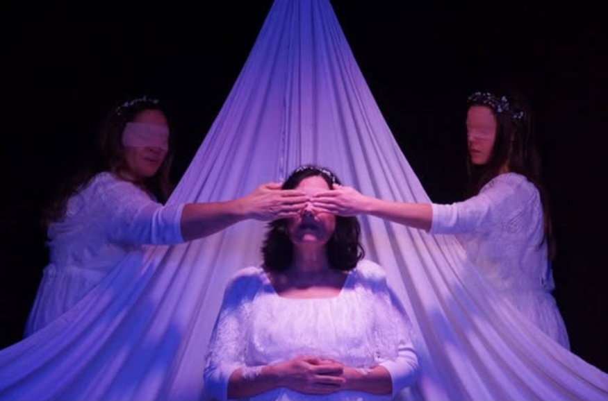 L’opera di Pessoa è, innanzitutto, un esercizio di stile. Non fine a sé stesso, ma che trova nella forma il compimento del suo contenuto. Il suo essere un “dramma statico”, con l’azione pressochè assente, “costringe” chi la mette in scena su un terreno di continua invenzione delle modalità dell’articolazione della parola in uno spazio. In questo senso, la maestria di Vittorio Bonaccorso è stata assoluta. Il regista ragusano ha realizzato come una sorta di monologo suddiviso in tre parti, ognuna legata al vissuto delle tre sorelle protagoniste (interpretate dalle straordinarie Tiziana Bellassai, Federica Bisegna e Benedetta D’Amato, da sx a dx nella foto), che, attraverso un flusso di coscienza tutto joyceiano, approda ad un’unica visione della realtà, configurata nella sua inevitabile scissione rispetto al sogno. Le tre sorelle vegliano una giovane morta durante la notte. Sulla nuda scena, esaltata da un biancore scenografico tutto bergmaniano, le tre girano bendate, come cieche dinnanzi ad una realtà che mai cattureranno, intorno a questo corpo inerme, che sembra ispirare loro inquietudine. Bonaccorso si muove a metà tra Shakespeare e Beckett. La realtà indecifrabile del drammaturgo irlandese sembra fondersi magicamente, attraverso la grande poesia filosofica di Pessoa, con l’onirismo del Grande Bardo. Il risultato si sostanzia in una espansione “mentale” dello spazio scenico, che accoglie il progressivo moltiplicarsi del “sogno dentro un sogno” attraverso la magia della parola. E’ la “narrazione” la grande protagonista del dramma di Pessoa, il racconto come sostanza vitale della parola, ultimo baluardo dinnanzi all’evanescenza della realtà. Ognuna delle tre sorelle amplifica o restringe, a turno, il dire dell’altra. Quando la figura del marinaio irrompe sulla scena, attraverso il racconto onirico di una delle tre, l’equilibrio tra le sorelle sembra rompersi, quel monologo prima condiviso inizia a frantumarsi, annullando ogni tentativo di interpretazione del se’. Pessoa ci pone dinnanzi alla consapevolezza dell’impossibilità di poter comunicare la nostra interiorità, il nostro “Io” più profondo, tema che sarà proprio di tutto il teatro “muto” di Beckett. L’incondivisibilità dell’esperienza personale, quella più intima, che in Pessoa riguarda il rapporto stesso dell’Uomo con una realtà sempre più fantasmatica, si impone in maniera assoluta, fino a sfiorare, nel pre-finale, la lucida follia di una delle tre protagoniste. L’evanescenza della parola diventa così la “spiegazione” della Morte attorno a cui le tre sorelle continuano a muoversi come a volerne trarre una ragione o un senso, che mai ci verrà dato. La scrittura di Pessoa si fa “verbo” dell’umano che insegue vanamente la propria condizione. Vita e morte coincidono, fino a diventare un tutt’uno quando il grande poeta portoghese ci lascia con il dubbio che sia proprio la giovane vegliata a star sognando le tre sorelle, che altro, forse, non sono che la proiezione di un sogno destinato a non chiudersi mai. Non esiste presente nè passato per Pessoa, per lui tutto si risolve in una memoria che vuole ingannare la realtà da cui proviene perchè tanto dolorosa da accettare. Il continuo alternarsi di realtà e sogno rimanda, inevitabilmente, al cinema di David Lynch, soprattutto al suo capolavoro assoluto, “Mulholland drive”, dove la continua negazione di entrambe le condizioni rimanda ad una percezione inconscia dell’esistenza, vista come un continuo moltiplicarsi di esperienze, di ragioni o sentimenti, che non possono essere collegate tra di loro, talmente è infinito e frantumato il vissuto interiore dell’Uomo. Pessoa sembra suggerire al grande regista americano che la messinscena del sogno altro non è che il tentativo di spiegare allo spettatore quanto si trovi immerso dentro una incognita da cui mai riuscirà a tirarsi fuori. Non c’è inizio, non c’è fine, tutto è insieme inizio e fine.