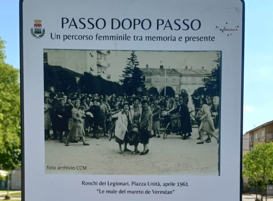 Dieci cartelli. Dieci tappe. Tanti volti, ma dieci frasi affidate ad altrettante voci di donne. Aperto con una serie di performance affidate alla danza, alla musica ed al dialogo, è stato inaugurato oggi, a Ronchi dei Legionari, “Passo dopo passo. Un percorso femminile tra memoria e presente”. L’ultima, interessante “creatura” nata da quella fucina di idee che sono l’assessorato comunale alla cultura e la biblioteca Sandro Pertini. Il tutto con la preziosa collaborazione dell’associazione Cantieri Culturali Creativi e di Leali delle Notizie. Un percorso, che parte da piazza della Concordia e dal quale prendere spunti e suggerimenti. Il tema, come detto, è quello della figura femminile. Un viaggio che si sviluppa lungo il 900, sino ai giorni nostri. “Con una particolare attenzione alla nostra città, al nostro territorio – ha detto Eva Ricupero – ma anche alla nostra regione, proprio per non essere chiusi in noi stessi. Non aspettatevi, però, un percorso in ordine cronologico che spieghi le tappe dei diritti delle donne o una storia sull’emancipazione femminile. Le dieci stazioni vogliono suggerire riflessioni evocative, vogliono far nascere un’emozione ed essere allusivi”. Otto immagini provengono dall’archivio del Consorzio culturale. Ritraggono lavoratrici, sportive, donne riprese nella loro quotidianità. Anche a Ronchi dei Legionari, come nel caso delle operaie del Cotonificio Triestino riprese, in piazza dell’Unità d’Italia nel 1961 o come una venditrice di limonata, immortalata, negli anni Trenta, lungo via Verdi. Ad esse è collegato un testo, rigorosamente scritto da donne. Patrizia Cavalli, Blaga Dimitrova, Ada Negri, Clara Schumann, Kathrine Switzer, Elda Soranzio, Ilaria Tuti, Mariangela Gualtieri e Alda Merini. Due, invece, sono opera della fotografa Mara Fella. Due splendidi ritratti di donne. Ogni cartello contiene un qrcode. Inquadrandolo si ha accesso alla pagina del sito www.ronchicultura.it, sul quale si possono leggere tutte le informazioni. Nel caso delle poesie, le poesie al completo, ma si può ascoltare anche un brano musicale opera di Clara Schumann. Tante le persone presenti alla vernice. L’amministrazione comunale era rappresentata dal sindaco, Mauro Benvenuto, dal vice sindaco, Enrico Papais e dalle consigliere Lucia Comuzzi e Federica Bon. Come illustrato da Anna Novelli, responsabile del servizio cultura, lungo il percorso i partecipanti hanno incontrato la ballerina Stefania Pisapia, che ha reso omaggio alle Portatrici Carniche ed hanno assistito alla performance teatrale “La Donna Specchio”, con l’attrice Barbara Chinaglia e la voce e chitarra di Claudia Turolla.. La camminata è stata arricchita anche da due momenti di restituzione performativa frutto del Laboratorio di cittadinanza attiva del gesto danzato, condotto da Romina Zangirolami. I partecipanti al laboratorio sono stati accompagnati dalla banda della Società Filarmonica Giuseppe Verdi. Al termine del percorso i ballerini Stefania Pisapia e Marco Prodan hanno interpretato la coreografia “Passo dopo passo”, una performance dedicata al sostegno reciproco e concreto tra uomo e donna ed alla forza del procedere insieme.