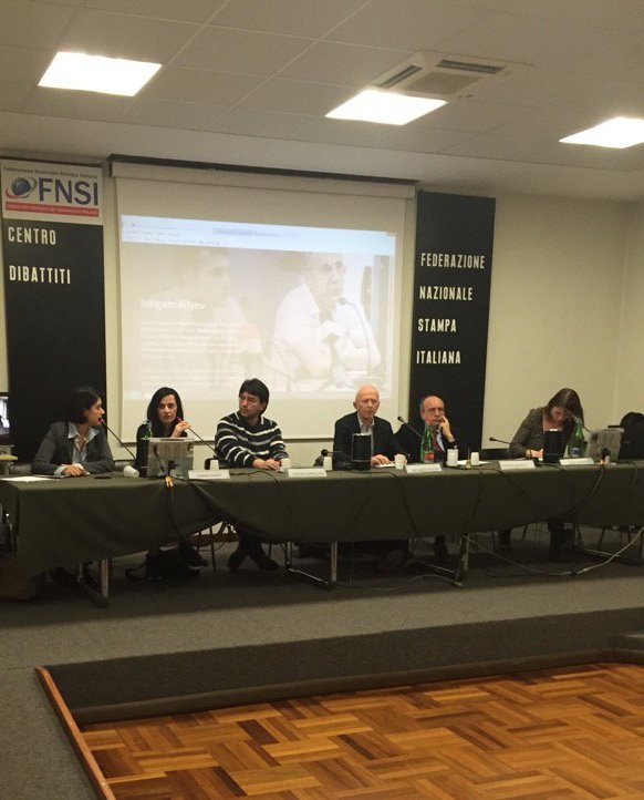 Mentre Amnesty denuncia nella sala Fnsi la repressione in Azerbaijan, oscuri individui, identificati come agenti azeri, si piazzano tra il pubblico…